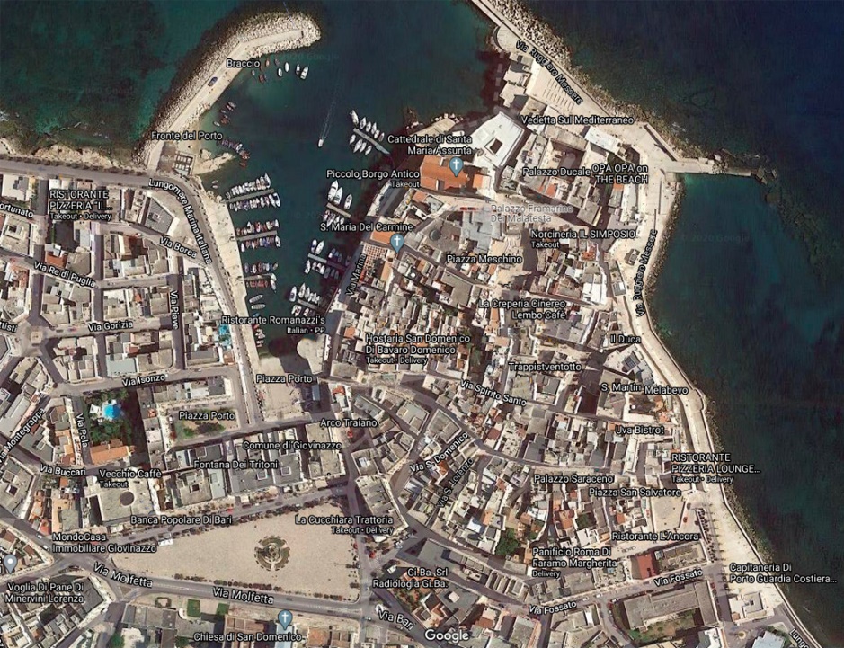 В 18 километрах на север от Бари, на побережье Адриатического моря находится небольшой волшебный городок из желто-кремового солнечного камня – Джовинаццо.