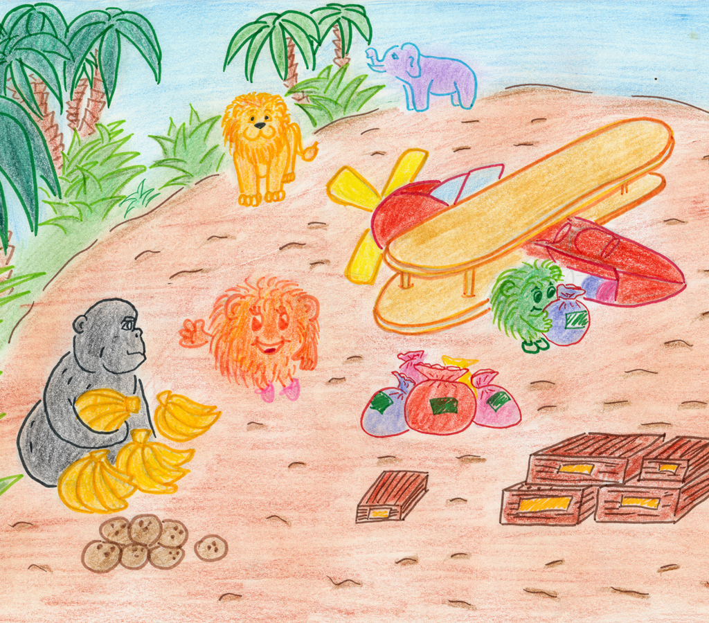 Груз на поляну был доставлен вовремя. Все звери, птицы, и даже жучки и комарики были предупреждены. Корабль забрал груз без всяких происшествий. Теперь можно было возвращаться домой, да и профессор закончил свою работу. Так что в Африке их больше ничего не удерживало. На прощание обезьяна