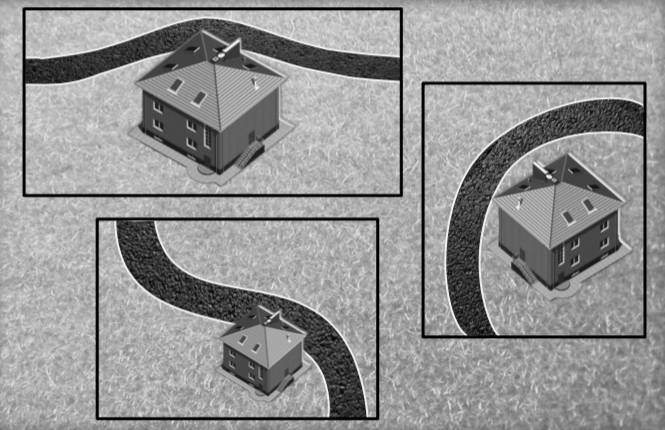 На фото внизу показано благоприятное расположение дороги или реки по отношению к вашему дому.