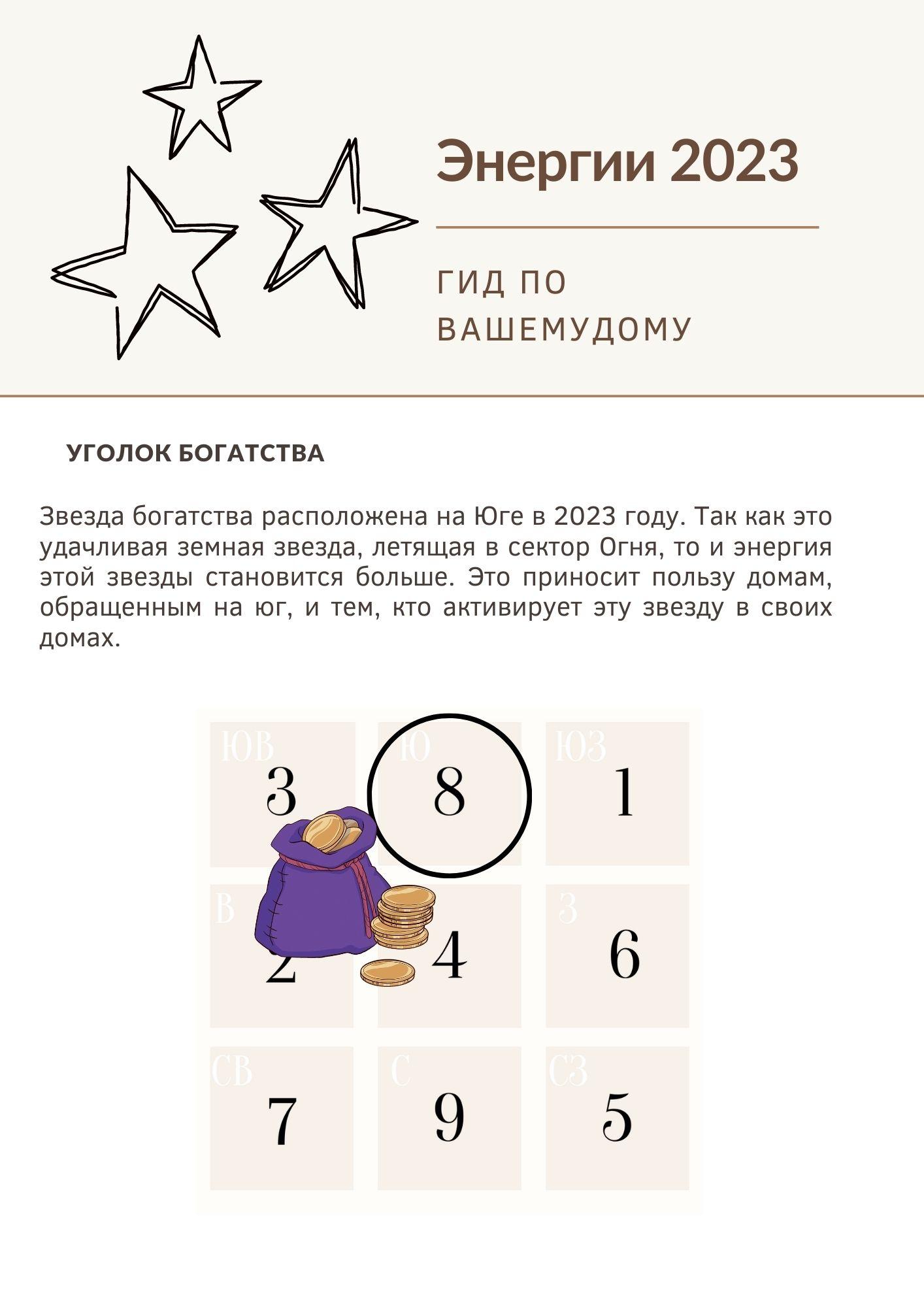Давайте рассмотрим ваш дом, с точки зрения энергий 2023 и узнаем как повысить энергии удачи в каждой из восьми сфер нашей жизнедеятельности, а именно: