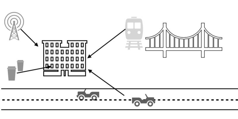 Источниками негативной энергии могут быть большие здания, эстакады, угрожающие и враждебные постройки.