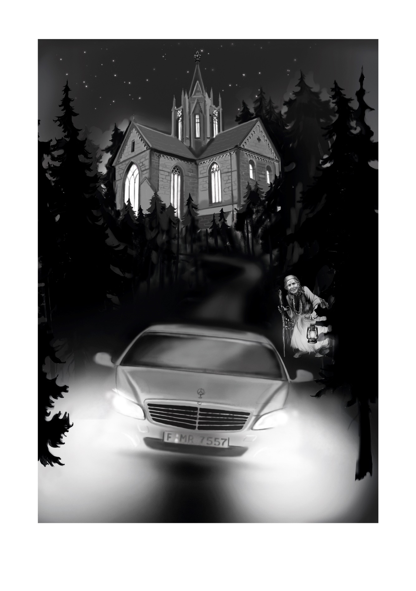 Одинокий заброшенный монастырь среди мрачных и густых деревьев в самом сердце Шварцвальда. Стены серые, окна дырами, кусты, лишайники вокруг. Я притормозил, машина встала. Худая и ухабистая дорога закончилась, тупо уткнувшись в стену старой постройки.