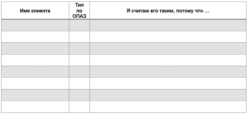 Все люди делятся на четыре основных типа клиентов: Опекун, Предприниматель, Аналитик и Заводила. Абревиатура – ОПАЗ.