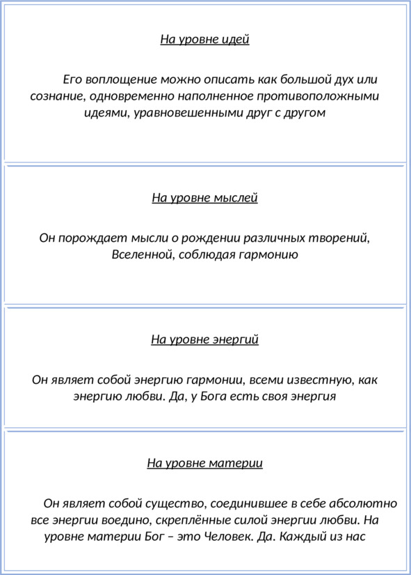 Мы рассмотрели достаточно много отдельных единиц из общей структуры мироздания. Можно назвать их отдельными инструментами. Универсальность и сложность мироздания состоит как раз в том, что каждое творение многомерно, а внутри каждого измерения существует такая же многомерность, и так происходит углубление как минимум, на четыре мерности, которые нам известны: идея, мысль, энергия, материя. Чтобы было понятней на примере, вспомните или посмотрите фрагмент старого фильма «Матрица», в котором на экране «реками текут» символы, и наш взор погружается в один, из этого бесконечного потока, символ, внутри которого оказывается такой же бесконечный поток.