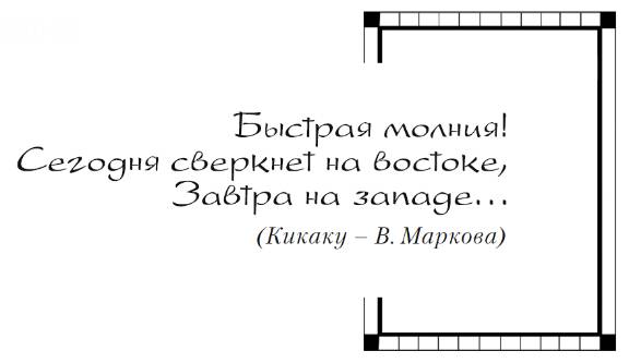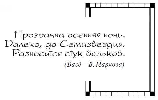 Хокку (хайку) – трёхстишие, состоящее из двух опоясывающих пятисложных стихов и одного семисложного посередине.