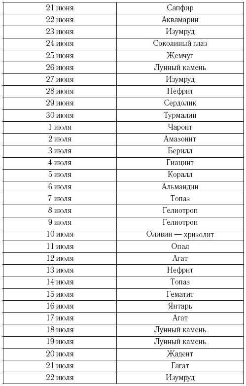 Камни – талисманыОсновные камни: лунный камень, изумруд, рубин.