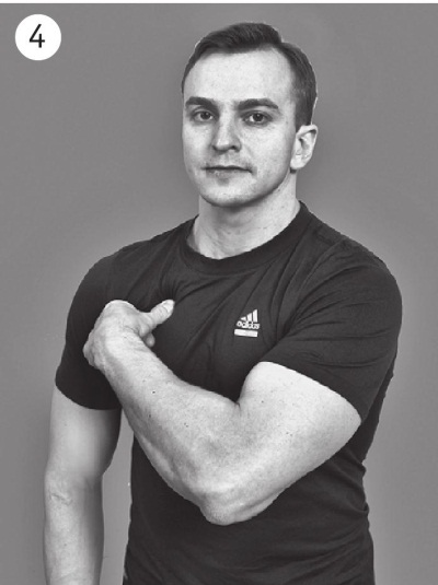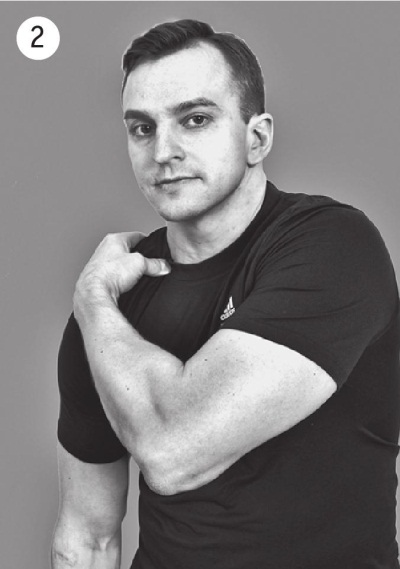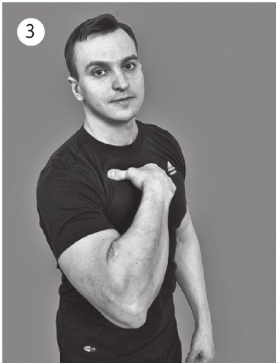 Начните сгибать локтевой сустав одной руки, а другой пытайтесь удержать ее от движения – это и есть уже известное вам изометрическое напряжение бицепса. Удержите это положение в течение двадцати секунд. Теперь быстро подойдите спиной к стене, положите ладонь работавшей руки на стену пальцами вниз и медленно приседайте, сохраняя руку выпрямленной. Вы чувствуете растяжение бицепса? Да, это сильное и даже немного болезненное, но приятное ощущение.