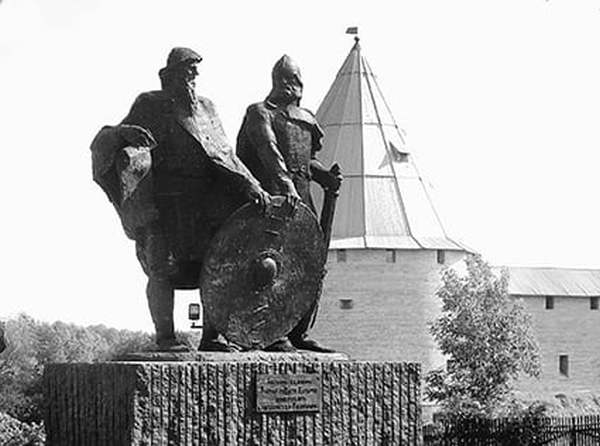 Памятник основателям русской государственности Рюрику и Вещему Олегу, установленный в Старой Ладоге в 2015 году, – характерный пример медиевализма. Фото автора