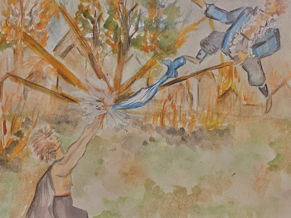 Демон разбушевался и начал поджигать всё, что видел. Тайан пытался сразу тушить огонь, но это было не обычное пламя. Бог начал потеть, его температура слишком сильно повышалась.