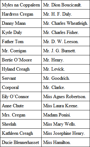 Corrig [Aside, L. C.] Proud as a Lady Beelzebub, and as grand as a queen. [Aloud.] True for you, ma’am; I would not have, come, but for a divil of a pinch I’m in entirely. I’ve got to pay £8,000 to-morrow or lose the Knockmakilty farms.