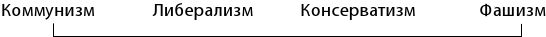Но действительно ли либерализм – это умеренная форма коммунизма, а консерватизм – умеренная форма фашизма? Как фашизм, так и коммунизм являются тоталитарными идеологиями, и не имеют ли они поэтому больше общего друг с другом, чем со своими соседями по спектру левые/правые?
