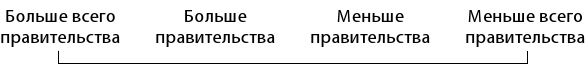 Политический комментатор Чарльз Краутхаммер, пытаясь придать словам «либеральный» и «консервативный» такой смысл, чтобы их можно было применять в любой стране мира, предложил следующее определение: «правое» означает «меньше правительства», а «левое» – «больше правительства». Его схема выглядела бы так:
