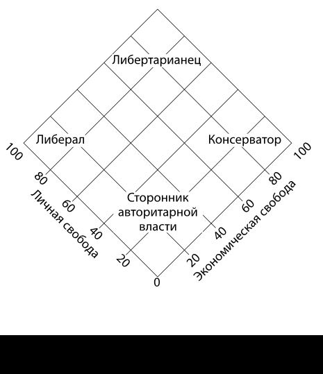 В современном американском политическом дискурсе на каждого наклеивается определенный ярлык: левый/правый, либеральный/консервативный. Соответственно возникает вопрос, к какой части политического спектра – левой или правой – относится либертарианство. Давайте посмотрим, что означают эти термины. В словаре «American Heritage Dictionary» мы читаем, что либералы выступают за «прогресс и реформы», а консерваторы являются сторонниками «сохранения существующего порядка и подозрительно относятся к предложениям об изменениях». В словаре «Random House Dictionary» мы читаем, что левые защищают «либеральные реформы… обычно в поддержку большей личной свободы или улучшения социальных условий», тогда как правые «защищают сохранение существующего социального, политического или экономического порядка, иногда авторитарными средствами». Итак, если бы мне пришлось выбирать, я бы выбрал «левых». Но если ориентироваться на эти стандарты, можно ли назвать консерваторами, скажем, Рональда Рейгана и Ньюта Гингрича? Разве они не поддерживали серьезные изменения в американском правительстве, которые, по их мнению, являлись «реформой» и были направлены на «улучшение социальных условий»? Данные определения мало что говорят о современной американской политике. В некоторых учебниках по политологии на основе дихотомии левые/правые политические идеологии ранжируются в виде континуума:
