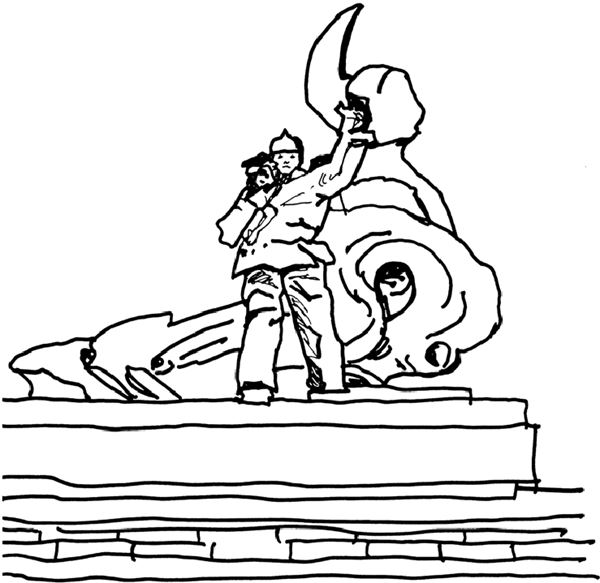 10Кроме памятника Стрелочнику удивляет туристов и другой объект. Памятник Пожарнику уже не в бронзе, он покрыт «серебрянкой», под слоем краски – бетонное основание. Пожарник пропорциональный, с ребенком на плече, удивительно похож на актера Леонида Куравлёва, но позади него изваяны такие клубы дыма, что даже Куравлёву не под силу потушить этот пожар!