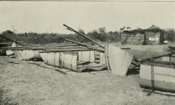 Лодки были изготовлены фирмой «Братья Форрест» в Эссексе. Они имели двойные кили и слегка выпуклое днище. Корпуса были сделаны из кованой стали; 26 футов в длину и 6 футов шириной; с высотой борта 4 фута, с изменением осадки в 1 фут на 2 тонны груза. Они несли гафельные паруса и состояли из шести секций. Каждую лодку переносили двадцать четыре человека, с помощью шестов, продетых через кольца, прикрепленные к планширю. Они были окрашены в белый цвет, на одной нанесены черная и зеленой полосы стрелковой бригады, а другой с синие и красные полосы шотландских гвардейцев. Первая, на которой предстояло плыть натуралистам: Гослингу и мне, была наречена «Ибисом», а вторая была названа «Кассиопеей», на ней должны были путешествовать мой брат и Талбот, которые были географами. Я получил идею строительства этих лодок, используя опыт майора Гиббонса в его экспедиции по Замбези; но я отказался от двигателей, которые были так склонны выходить из строя, и вместо этого полагался на собственные методы движения при помощи весел и шестов. Более того, я заменил алюминий на кованую сталь, поскольку первый не выдержал бы грубой работы среди порогов. Кроме того, наши лодки были более широкими, так как каждой приходилось нести вес двенадцати гребцов. Общая стоимость двух плавсреств без оборудования составляла 380 фунтов. Было бы трудно преувеличить важность этих лодок для экспедиции, поскольку во многих местах они выполняли работу носильщиков и вьючных быков, которых невозможно было получить в некоторых территориях, через которые мы проходили.