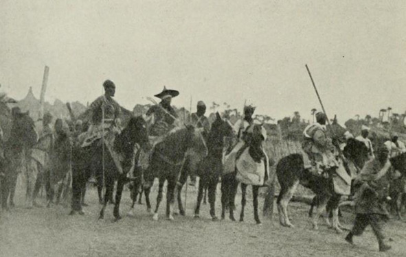 На третий день осады качелле удалось послать двух всадников, прорвавшихся через кольцо разбойников и доскакавших до старого «короля» провинции Йо, попросив его выяснить мое местонахождение и попросить меня собрать всех людей, которых я смогу отправить на помощь Бултури. В это время я был в деревне Арреги примерно в пятнадцати милях от деревни Йо (одноименной с названием реки и провинции), где посланники нашли меня в тот же вечер. Я сразу же вызвал местного вождя и приказал ему привести всех мужчин, которых он мог найти в округе. К утру он собрал шесть всадников и тридцать лучников, и я сразу же направился с ними к Йо. Дорога проходила через густой буш, и мы не могли видеть дальше, чем на сотню ярдов вперед. Было очень холодно, как в английский зимний день.