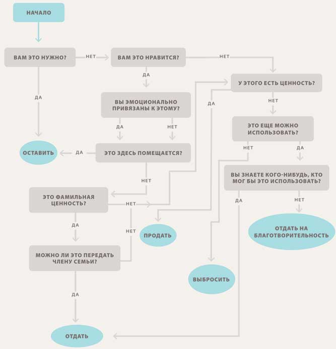 Не давайте себе слишком много времени на раздумья, стоит ли оставить эту вещь. Разбирать вещи надо быстро и по существу – по три секунды на вещь. Чем больше времени вы себе даете на размышления о вещи, тем больше вероятность к ней привязаться.