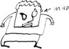 I sit down next to a mapless Euroteentourist who, due to the absence of props, is simply staring balefully into the middle distance. I get out my notepad. Just at this moment a mad, hard-faced pensioner in black zip-up flying jacket, flared jeans and trainers hoves into view, spitting expletives. He sees me watching him and shouts across the cobbled street ‘Ye bollix!’ I avert my gaze, but he walks (no – not quite the right word – he lurches and sways) right up to me and shouts again ‘Ye bollix!’ I look up at him and say ‘Sorry?’