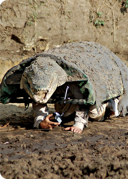 At last, my croc suit was ready. And boy, did it look real! My plan was to get close enough to a group of wild crocs to put high-tech devices on their backs. If my test was going to work, I would have to make the crocs believe I was one of them.