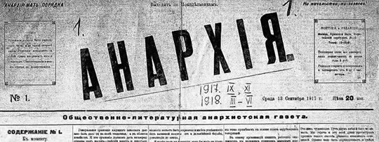 Первый номер газеты «Анархия». 13 сентября 1917 г.