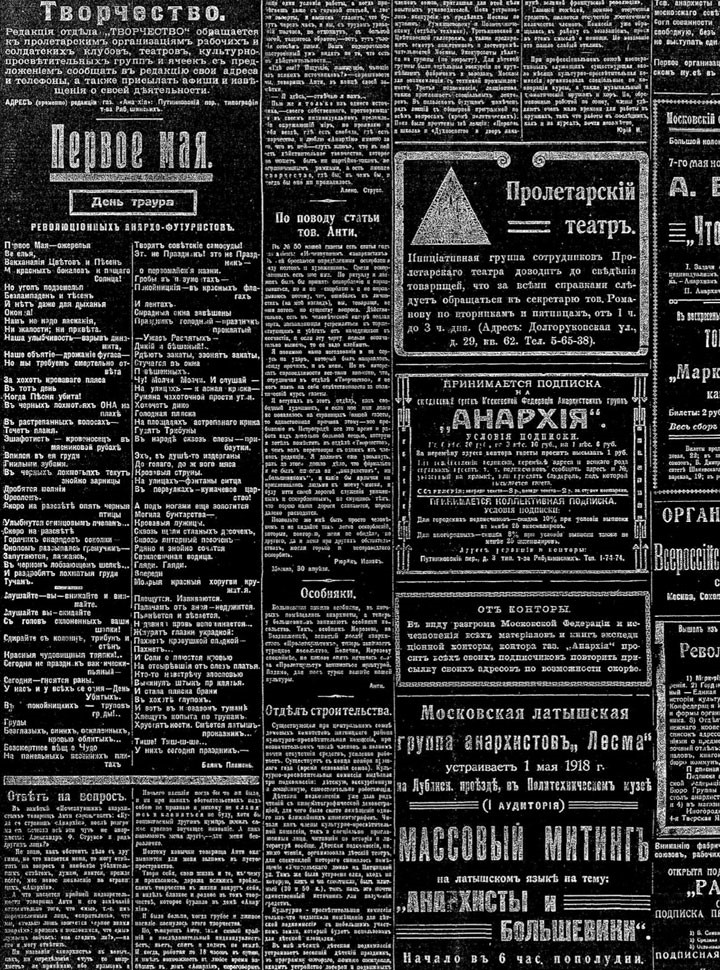 С этого момента начинается недолгая, но чрезвычайно насыщенная история русского анархо-авангардизма.