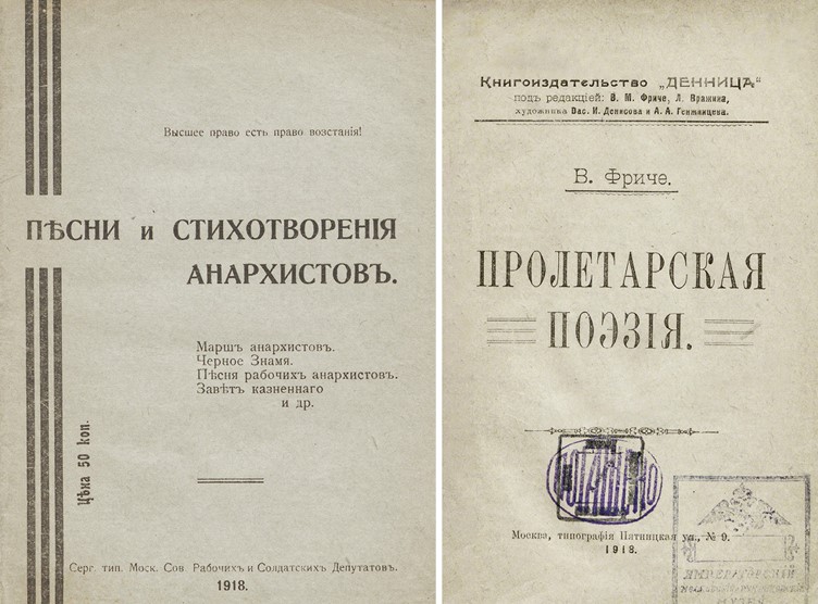 Обложки книг 1918 г. Вопросы поэтики революции сразу после ее победы занимали и анархистов, и большевиков.