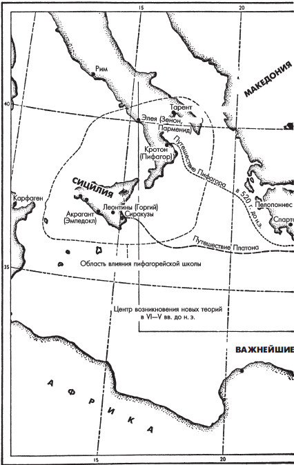 Греческая философия зародилась на побережье Малой Азии, в Ионии, позже имела большие достижения в Южной Италии и, наконец, достигла своей вершины в Афинах в V и IV веках до н. э.
