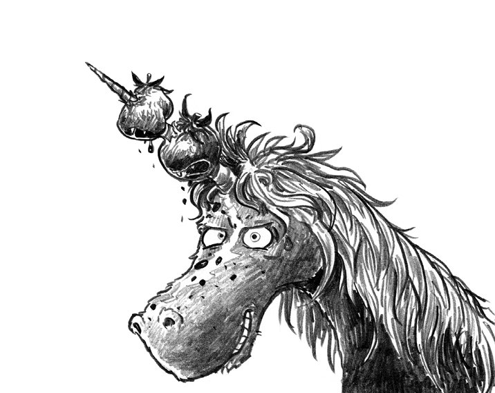 Он быстро пошлёпал дальше, пока Зигфрид его не заметил и опять не потребовал каких-нибудь объяснений. Мимо, кивнув ему, протрусил единорог, превративший свой рог в шампур для помидоров. Единороги очень полюбили Чешуйку после того, как тот выяснил, кто устраивал в Волшебном лесу свалку.