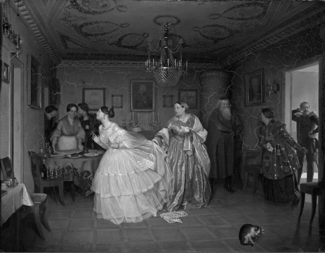 Рис. 7. П. А. Федотов. «Сватовство майора», 1848. Холст, масло. 58,3x75,4 см. Государственная Третьяковская галерея, Москва