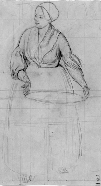 Рис. 15. П. А. Федотов. Эскиз к картине «Сватовство майора» (кухарка с блюдом), 1848. Бумага, графитный карандаш. 28,7x16,2 см. Государственный Русский музей, Санкт-Петербург