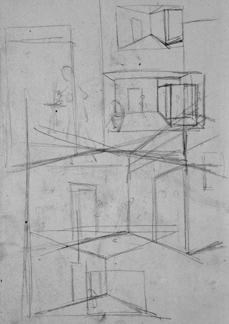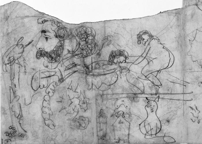 Рис. 16. П. А. Федотов. Эскизы к сепии «Офицерская передняя», без даты. Бумага, графитный карандаш. 35,3x21,7 см. Государственная Третьяковская галерея, Москва