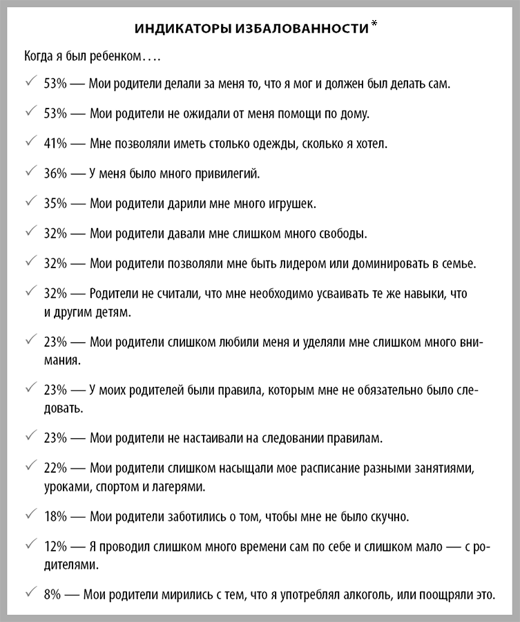 * Индикаторы избалованности воспроизводятся с разрешения авторов. © 2002 David J. Bredehoft, Jean Illsley Clarke, and Connie Dawson.
