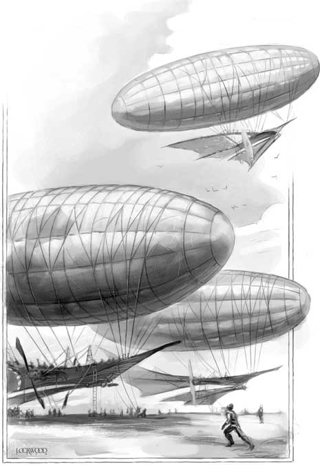 Да, целигеры являли собою просто потрясающее зрелище. Какая жалость, что мир никогда не способствует развитию техники столь же эффективно, как война! Эти воздушные суда походили на целигеры, парившие над Немирным морем всего-то восемь лет назад, не более, чем современный фрегат похож на древнюю ладью-драккар. Те, первые целигеры были связаны проволокой из натуральной драконьей кости, опиленной, где возможно, и хитроумно подогнанной деталь к детали, вид имели довольно нелепый и для наших целей никак бы не подошли. Каркасы современных целигеров, сооруженные из синтетической драконьей кости, состояли из тоненьких реек и планок, а уж воздушные винты были куда длиннее и шире костей дракона любой существующей разновидности (позже мне объяснили, что это необходимо для полетов в разреженном воздухе больших высот). Все это выглядело вполне обыденно; на происхождение материала намекал лишь его характерный цвет.
