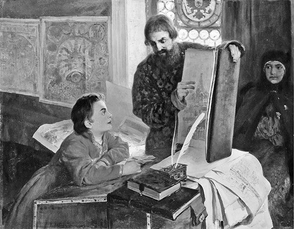 Дьяк Зотов обучает царевича Петра Алексеевича грамоте. 1903 г.