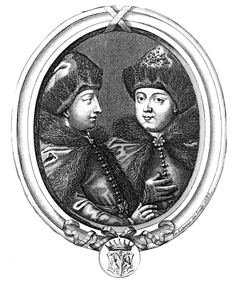 Петр I (10 лет) и его брат Иван (16 лет).