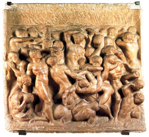 Под влиянием Полициано рядом с живой природой Микеланджело изучал классическую древность. Полициано дал ему сюжет для рельефа «Битва кентавров», в котором можно найти некоторое сходство с тем, как изображались подобные сюжеты на античных саркофагах. Это произведение Микеланджело также хранится во дворце музея Буонарроти во Флоренции (голова фавна – в галерее Уффици). Оно возбудило восторг и изумление многих. Сам Микеланджело в старости часто указывал на эту вещь и говорил со слезами на глазах, что он мог бы создать нечто великое, если бы не оставлял никогда скульптуры для живописи.