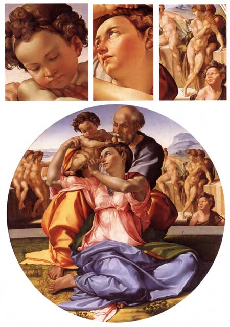 Микеланджело Буонаротти. Святое семейство с младенцем святым Иоанном (Тондо Дони). Флоренция, Уфицци