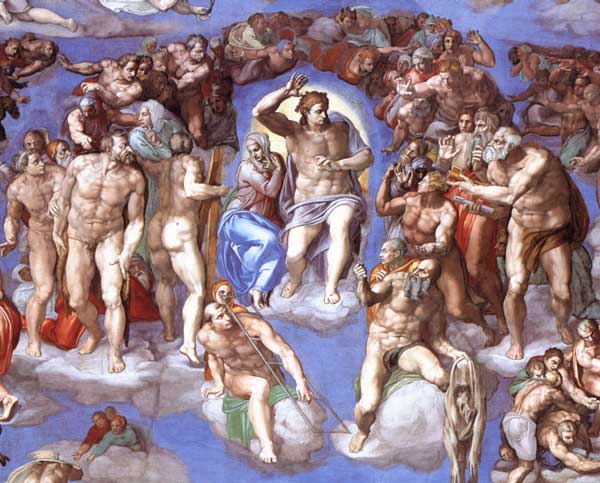 Микеланджело Буонаротти. Страшный суд. Фреска. Центральный фрагмент.