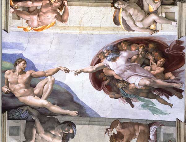 Микеланджело Буонаротти. Роспись свода Сикстинской капеллы. Сотворение Адама.