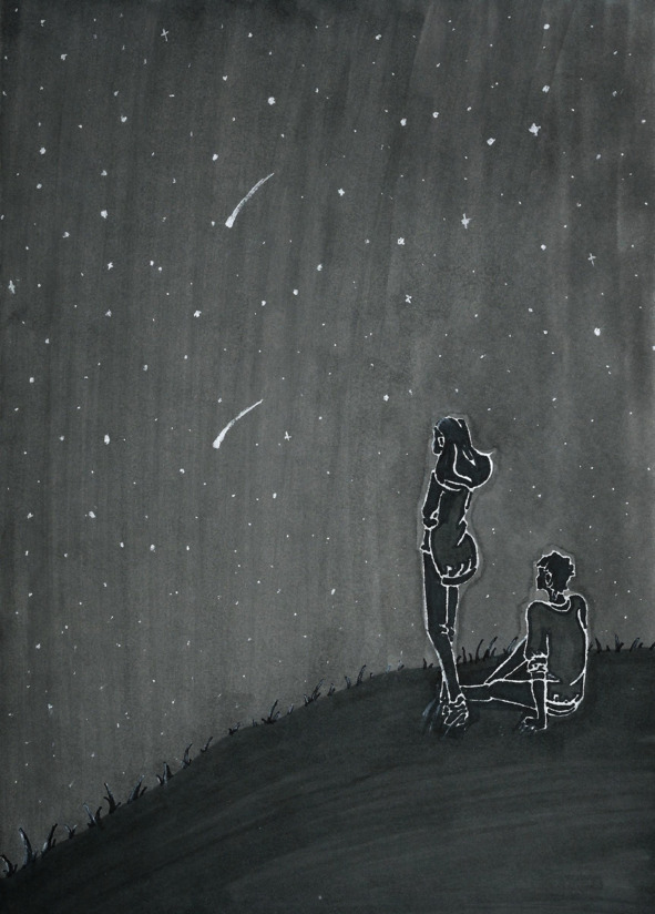 – Посмотри на небо! – громко сказал парень. И девушка наконец оторвала взгляд от земли. На темном темном небе виднелся почти весь млечный путь. Каждая звездочка сияла, как прекрасно ограненный алмаз.