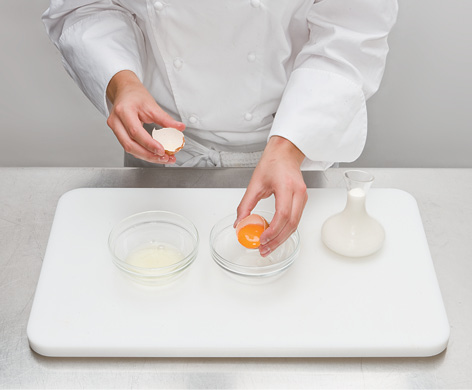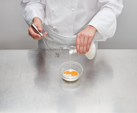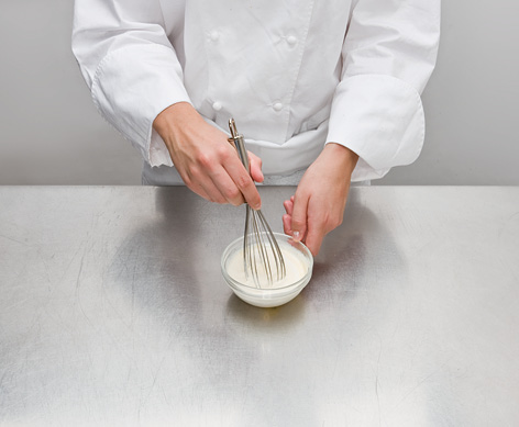 3. Mix egg yolk and cream. Subsequently add some of the sauce to be thickened before stirring Liaison into sauce.