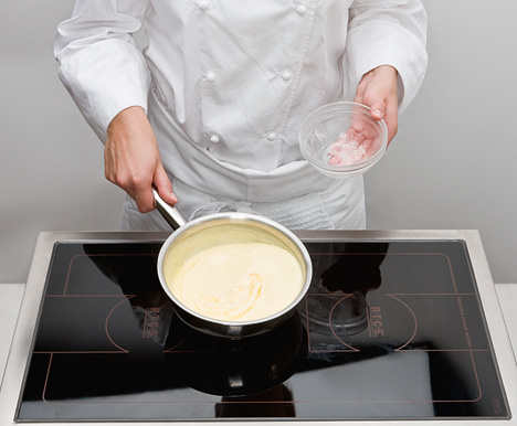 Sauces thickened with cream only will have a rather liquid consistency. They give the impression of relatively light sauces. The truth, however, is that such sauces have a higher energy content than sauces thickened with flour or starches. On the one hand, whole cream or half-and-half are added, and then reduced to reach the desired texture. On the other hand, adding cream is intended to improve the sauce. One can reach a stronger thickening result by folding in the cream or sour cream to the hot, but not boiling sauce just before serving. Sour cream goes well in some sauces (Sauces aux Champignons, Sauces Venaison), but it is by far not the perfect match for all sauces. Before adding it to the sauce, add sour cream to a small amount of sauce and check taste. Here the same principle applies in respect of salt and spices: what has been added is in the sauce – you can always add something to it, but you can never remove anything from it!