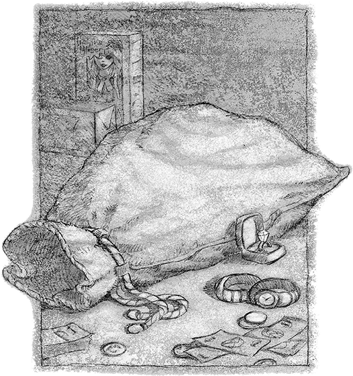 Он сделал глубокий вдох. Затем поднял мешок и поразился, насколько тот оказался легким – Джесс спокойно мог держать его на вытянутой руке. Размером мешок был с большой мусорный пакет, какими пользуются в саду. Джесс стряхнул с мешка снег и отнес его вместе с куклой на кухню, прикрыв за собой дверь спальни, чтобы не напустить в дом холода.