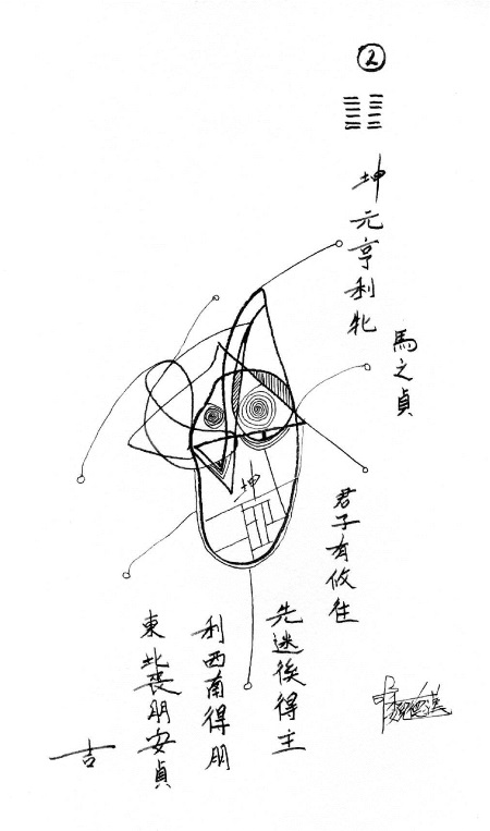 «ЗЕМЛЯ является парой знака НЕБО, потому что Сила духа знака ЗЕМЛЯ – это Сила духа знака НЕБО. Таким образом, мягкой Послушностью принимаешь и имеешь окончание. Когда есть окончание в осуществлении Напряженности до конца, тогда говорится: „Самке коня Ценность – в Верности“.