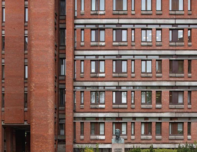 Выставка «Ленинградский модернизм и постмодернизм. Взгляд из XXI века» (среди участников которой один из авторов этой книги – фотограф Юрий Пальмин) проходит в здании Библиотеки и арт-резиденции ШКАФ на улице маршала Тухачевского, 31. Это здание, увы, не попало в наш путеводитель, как не вошли сюда, по самым разным причинам, многие другие важные здания: Российская национальная библиотека на Московском и комплекс архивов на Шпалерной, спортшколы на проспекте Королева и на Малом проспекте, бассейны на Среднем проспекте и в Конном переулке, Ленэлектронмаш на Гражданском проспекте и НИИ лесного хозяйства на Институтском проспекте, общежития на Садовой и на улице Рентгена, здание высшей партшколы на улице Фучика и Кораблестроительный институт на Ленинском проспекте…