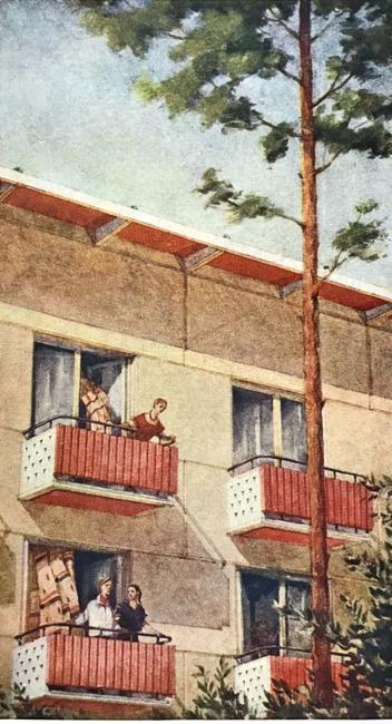 А. Иконников, Г. Келлер. Проект типового крупнопанельного жилого дома. Фрагмент фасада. 1956