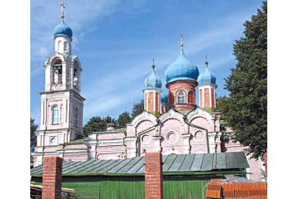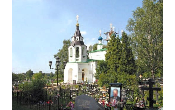 Церковь Рождества Пресвятой Богородицы в Рождествено-Суворове. На первом плане – могила С. Федорова.