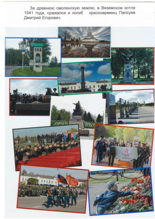 Выяснили, что Светлана – правнучка Папсуева Дмитрия Егоровича, погибшего в годы Великой Отечественной войны, останки которого обнаружены поисковиками под Вязьмой и погребены в Вяземском районе, Смоленской области, в селе Богородицкое на военном Мемориале. Новость стала сразу известна всем родственникам.