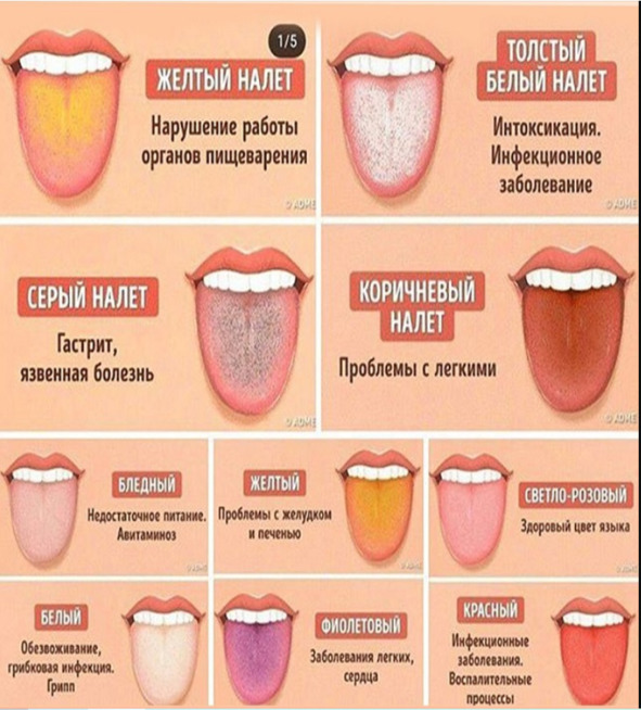 При правильном функционировании организма, язык человека имеет тонкий и неплотный беловатый налет. Если этот налет меняет свой цвет или толщину, это может быть тревожным сигналом.