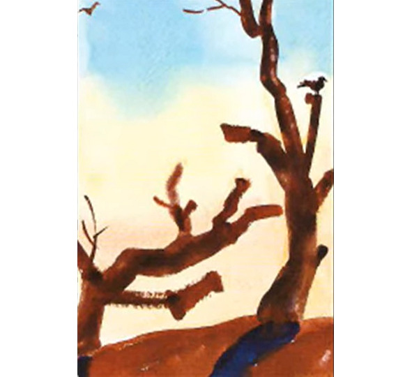 Клиентка: Сухие обломленные деревья. Птичка какая – то сидит. Картина безрадостная. Одна сидит, а другая летит вверх. Перейдем в левый верхний угол. У корней этого дерева течет какой – то источник. Не смотря на все трудности и этот источник жизненной силы смог дать, то есть из такого сухого ствола, после всех этих происшествий дал жизни. Ее душа была как этот сухой ствол. Тем не менее она имела под собой этот источник силы какой – то, который не дал ей остаться этим сухим деревом, не дал ей сломаться. Птиц я восприняла как символ новой жизни.